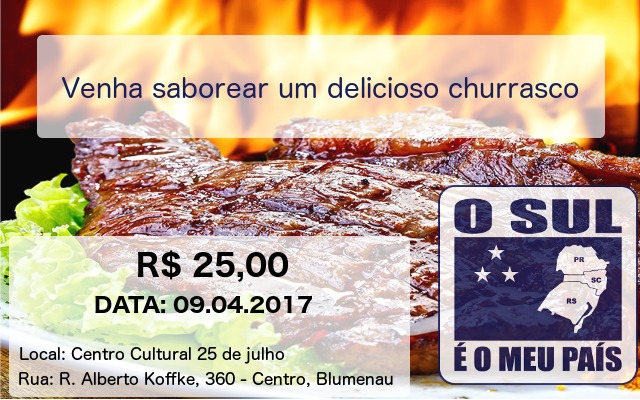 Churrascada será realizada em Blumenau/SC para comemorar os 25 anos do movimento no dia 09 de abril