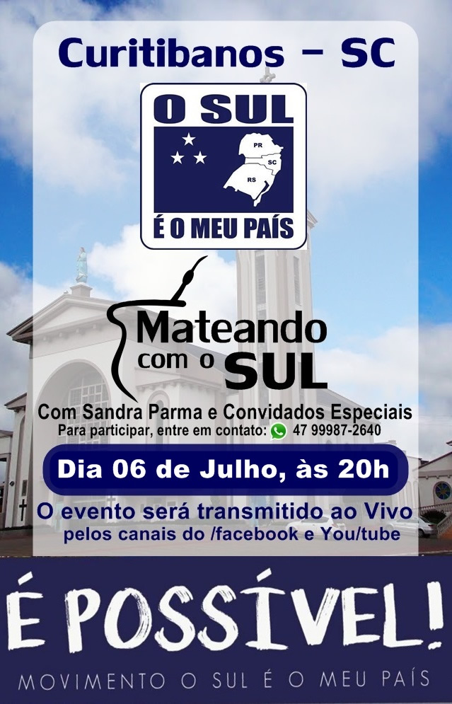 Nesta sexta-feira, dia 06 de julho, a partir das 20h será realizado o MATEANDO COM O SUL em Curitibanos/SC. Ele será transmitido pela página oficial do Movimento no Youtube, no endereço…