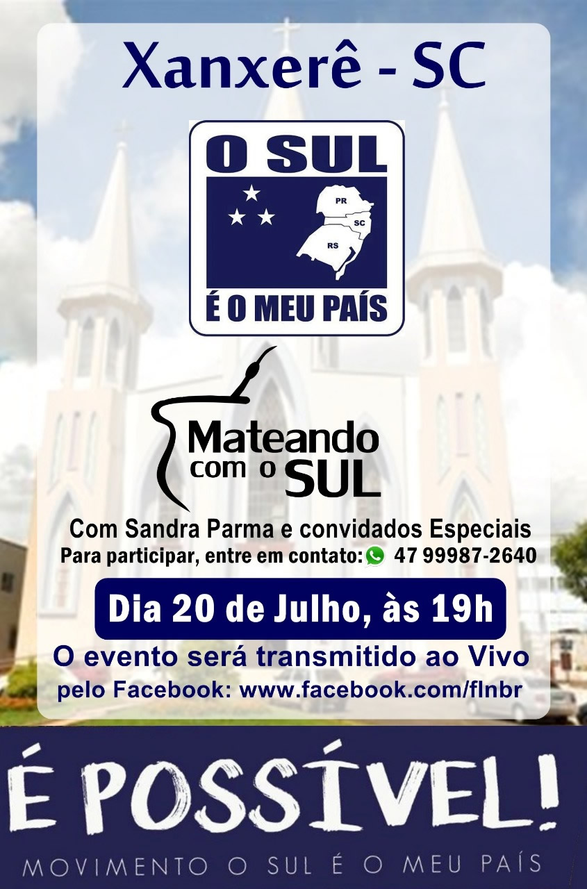 Nesta sexta-feira, dia 20/07, a partir das 19h será realizado o MATEANDO COM O SUL em Xanxerê/SC. Ele será transmitido pelo canal oficial do Movimento no Facebook, no endereço…