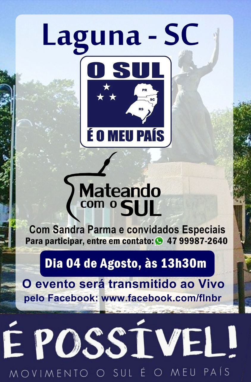 Neste sábado, dia 04/08, a partir das 13h30 será realizado o MATEANDO COM O SUL em Laguna/SC. Ele será transmitido pelo canal oficial do Movimento no Facebook, no endereço…