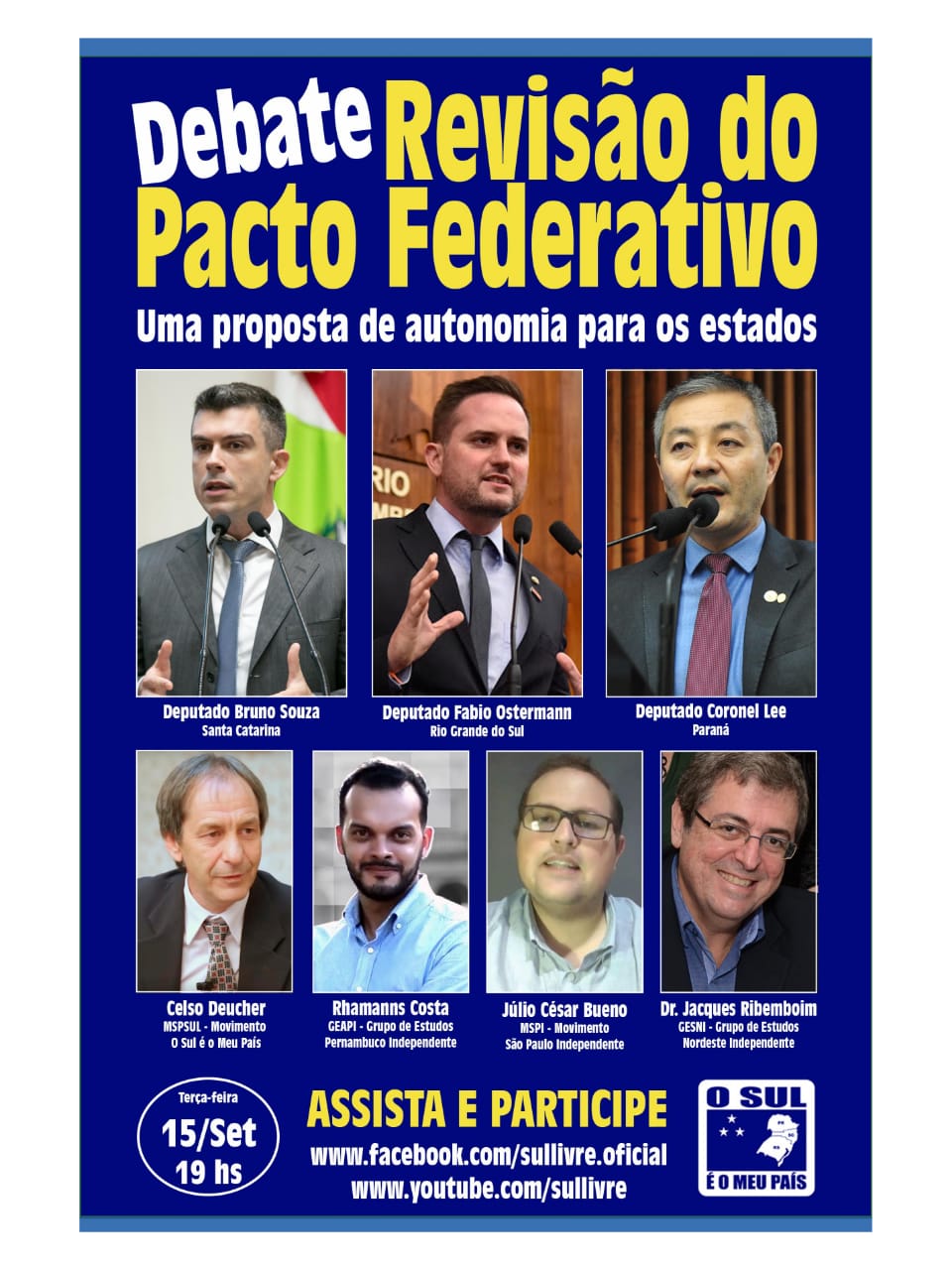 No próximo dia 15 de setembro, terça-feira, às 19 horas, o Movimento O Sul é o Meu País promove através de um pool nas suas redes sociais, um histórico debate sobre a revisão do Pacto Federativo.…