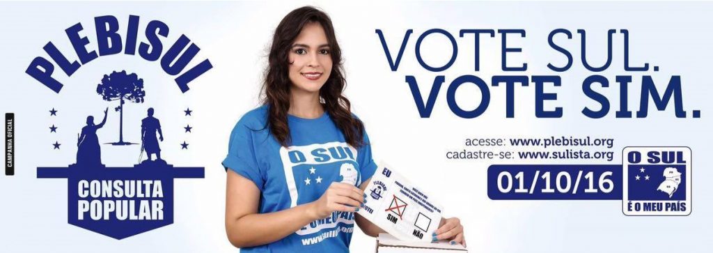 Votaria sim, mas aqui em Londrina-Pr não sabia onde ir pra votar.. Apoio o movimento, e temos que parar com a ideia de que vai haver problemas de imigração etc. não seremos inimigos do Brasil. e sim um Pais aliado e forte, a separação em primeiro ponto vai fortalecer o próprio Brasil. Pelo resto do mundo a separação de estados em países acontece com mais facilidade e mente altruísta. Precisamos que o movimento se fortaleça e a separação ocorra, será um marco pra historia e um avanço para ambos países o Sul e o Brasil.