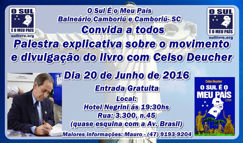 Agora é a vez do município de Balneário Camboriú/SC ter sua palestra de divulgação das idéias de Independência de nosso Sul, em um País Livre e Prospero.