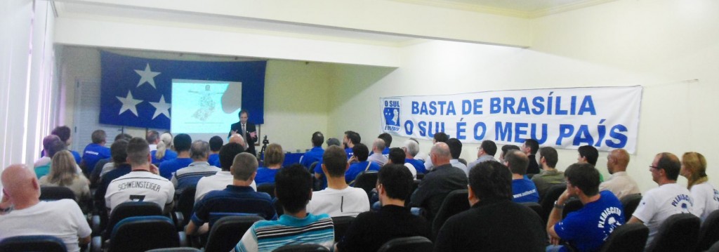 Movimento o Sul é o meu País realiza neste sábado, dia 5, reunião/seminário na Câmara de Vereadores de Jaraguá do Sul (Rua Getulio Vargas, 621, centro). O evento é aberto a toda comunidade jaraguaense e da região e terá inicio às 17 horas. Entre os assuntos tratados estão as diretrizes da entidade, compromissos e propostas para a independência do Sul, bem como, será aberto um debate para que as pessoas tirem suas duvidas sobre os diversos assuntos que envolvem a proposta.