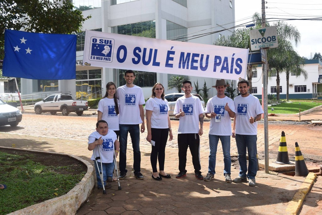 Pedestres e motoristas receberam panfletos explicativos e adesivos da causa que busca a autodeterminação do povo do Sul, através da separação e criação de um novo país.