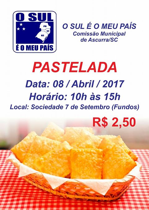 A comissão municipal do Movimento o Sul é O Meu País de Ascurra / SC, convida todos os sulistas de Ascurra e região, para a sua 1ª Pastelada Sulista.