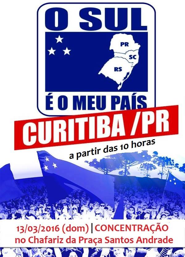 Por votação na ultima reunião realizada no dia 27/02, a comissão de Curitiba decidiu divulgar a causa Sulista na manifestação do dia 13 de março de 2016 a partir das 10 horas em ponto fixo no chafariz da praça Santos Andrade.