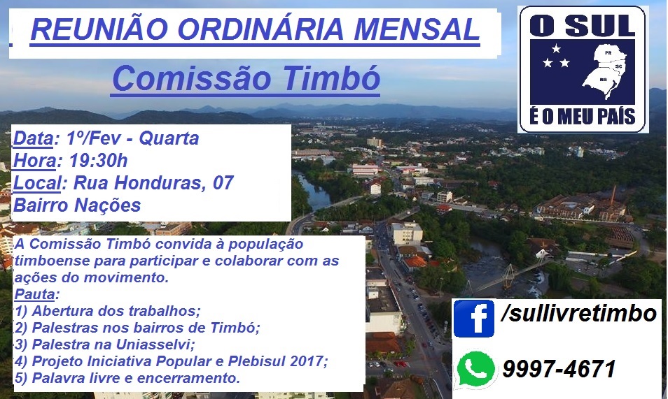 Contamos com a participação de todos. Viva o Sul Livre!