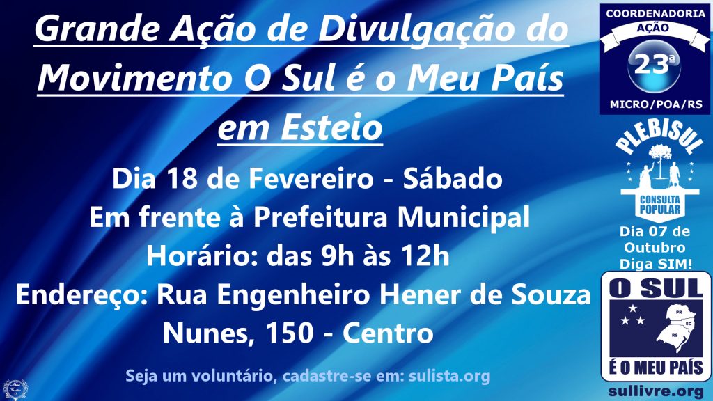 Grande ação de divulgação em Esteio/RS no dia 18 de fevereiro