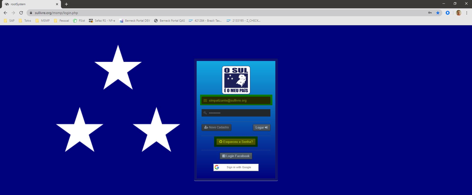 Se você esqueceu sua senha, no campo do e-mail preenche seu e-mail e clique no botão ESQUECEU SUA SENHA.