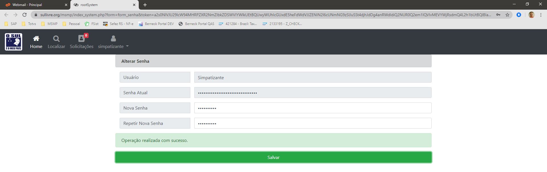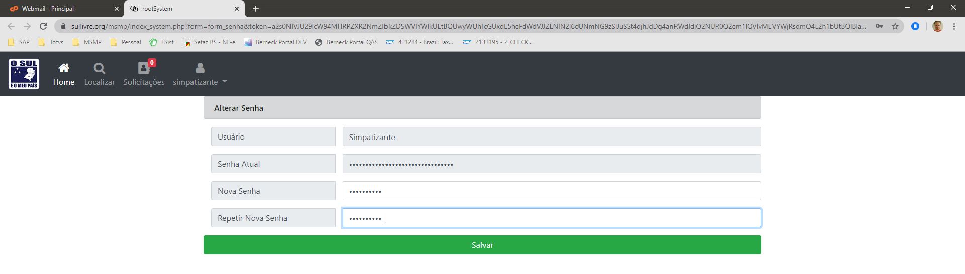 Após digitar sua nova senha clique no botão SALVAR.