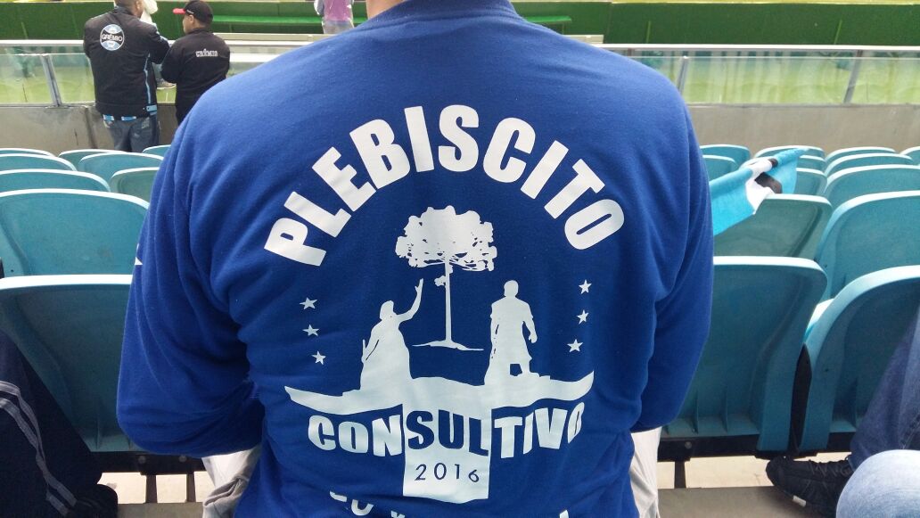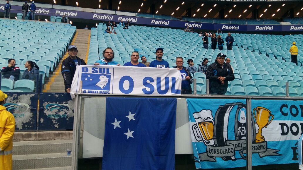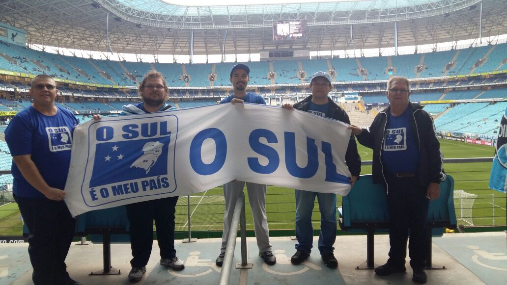 Neste último domingo, dia 16 de julho, membros do Movimento O Sul É O Meu País, estiveram presentes divulgando o Movimento na Arena do Grêmio.
