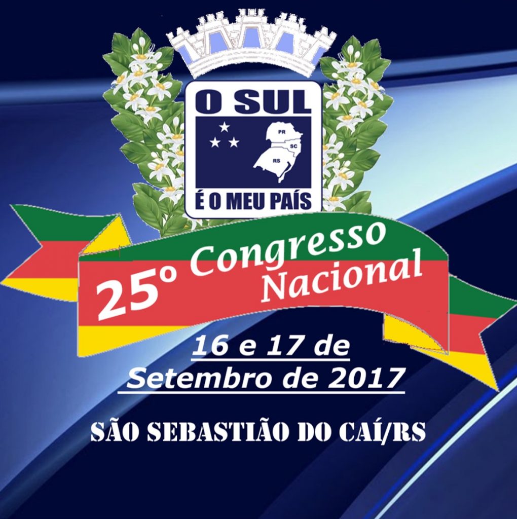 Através do Edital 0019/2017, o presidente do Movimento O Sul é o Meu País, Odilon Xavier de Freitas, no uso de suas atribuições legais e de acordo com os Estatutos Sociais desta Entidade faz saber a todos os homens e mulheres livres, filiados, lideranças, simpatizantes e militantes dos ideais defendidos por esta Organização que NOMEIA A COMISSÃO ESPECIAL ORGANIZADORA DO XXV CONGRESSO NACIONAL que ocorrerá nos dias 16 e 17 de setembro em São Sebastião do Caí, Rio Grande do Sul: