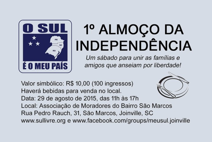 Neste dia 29/08 a comissão municipal de Joinville fará seu primeiro seu 1o. almoço de independência. Após o almoço o professor Ademar Vilk fará uma apresentação de 45 min , permitindo que nossos…