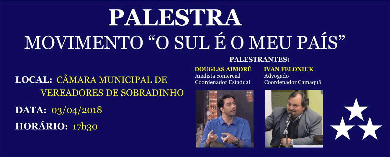 No próximo dia 03 de abril, terça-feira, será realizada palestra do Movimento O Sul é o Meu País em Sobradinho/RS. Ela acontecerá a partir das 17h30 na Câmara de Vereadores da cidade, e será…