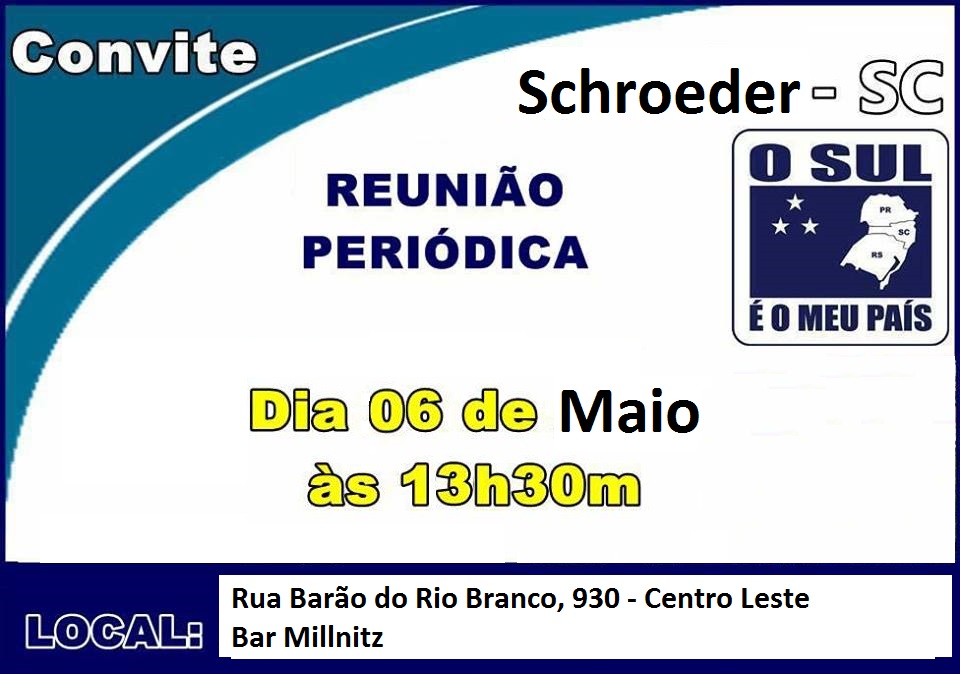 No dia 06 de maio, a partir das 13h30m, a Comissão Municipal de Schroeder/SC irá se reunir no Bar Millnitz, localizado na Rua Barão do Rio Branco, 930, em direção ao Bairro Duas Mamas. Este encontro…
