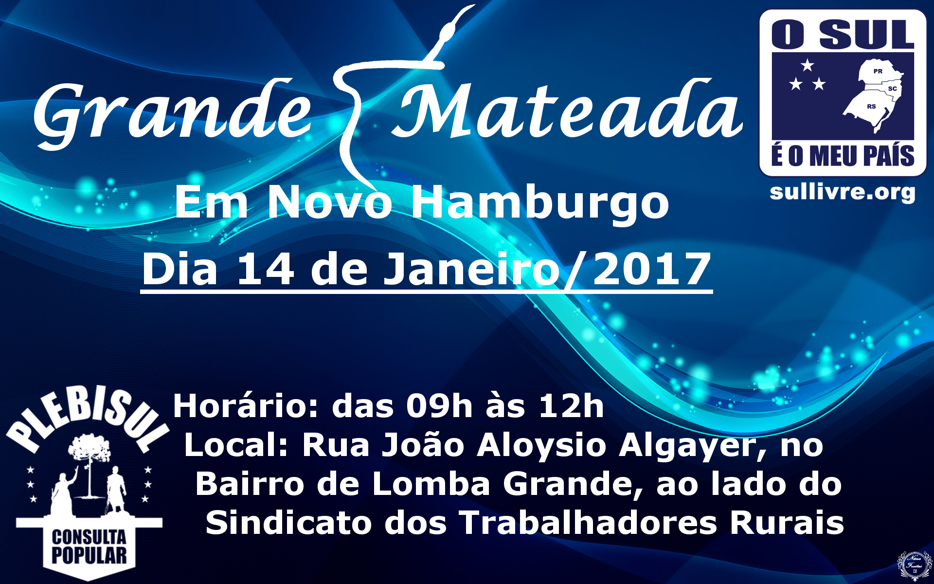 No dia 14/01, a partir das 9h00, a comissão municipal de Novo Hamburgo/RS realizada uma grande mateada. Ela será realizada na Rua João Aloysio Algayer, ao lado do Sindicato dos Trabalhadores Rurais,…
