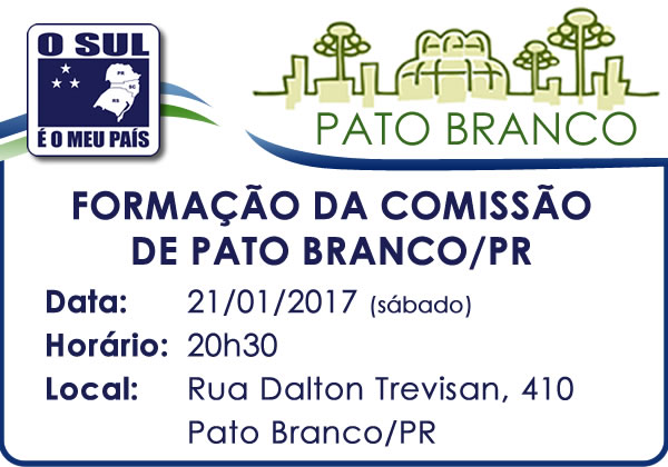 Dia 21/01 será formada a comissão municipal de Pato Branco/PR