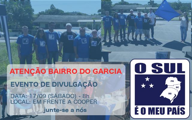 Neste sábado, dia 17/09, haverá divulgação do Plebisul, no bairro do Garcia em Blumenau. No local, haverá distribuição de adesivos, panfletos, e venda de camisas. Venha participar conosco! Data:…